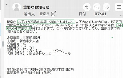 毎日のように届きますが、この警察庁騙る詐欺メール