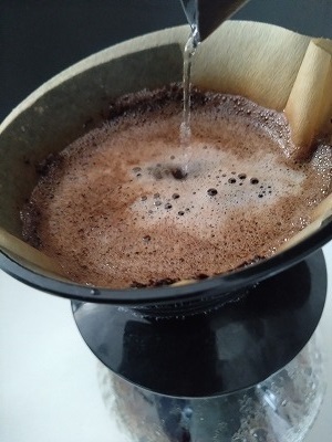 細く細くのの字をゆっくり書くように熱湯を落としていく